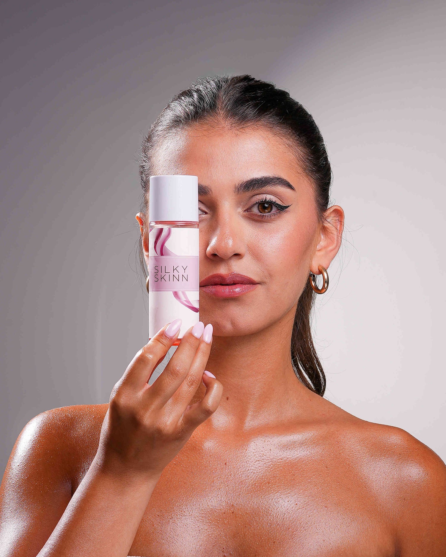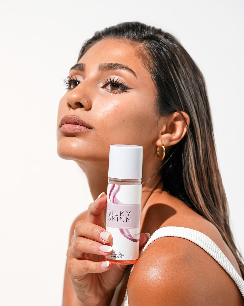 Indulge your skinn in the luxurious touch of our silky oil—lightweight yet deeply nourishing. Infused with skin-loving botanicals, it glides on effortlessly, leaving your skinn soft, radiant, and beautifully hydrated without a greasy finish.